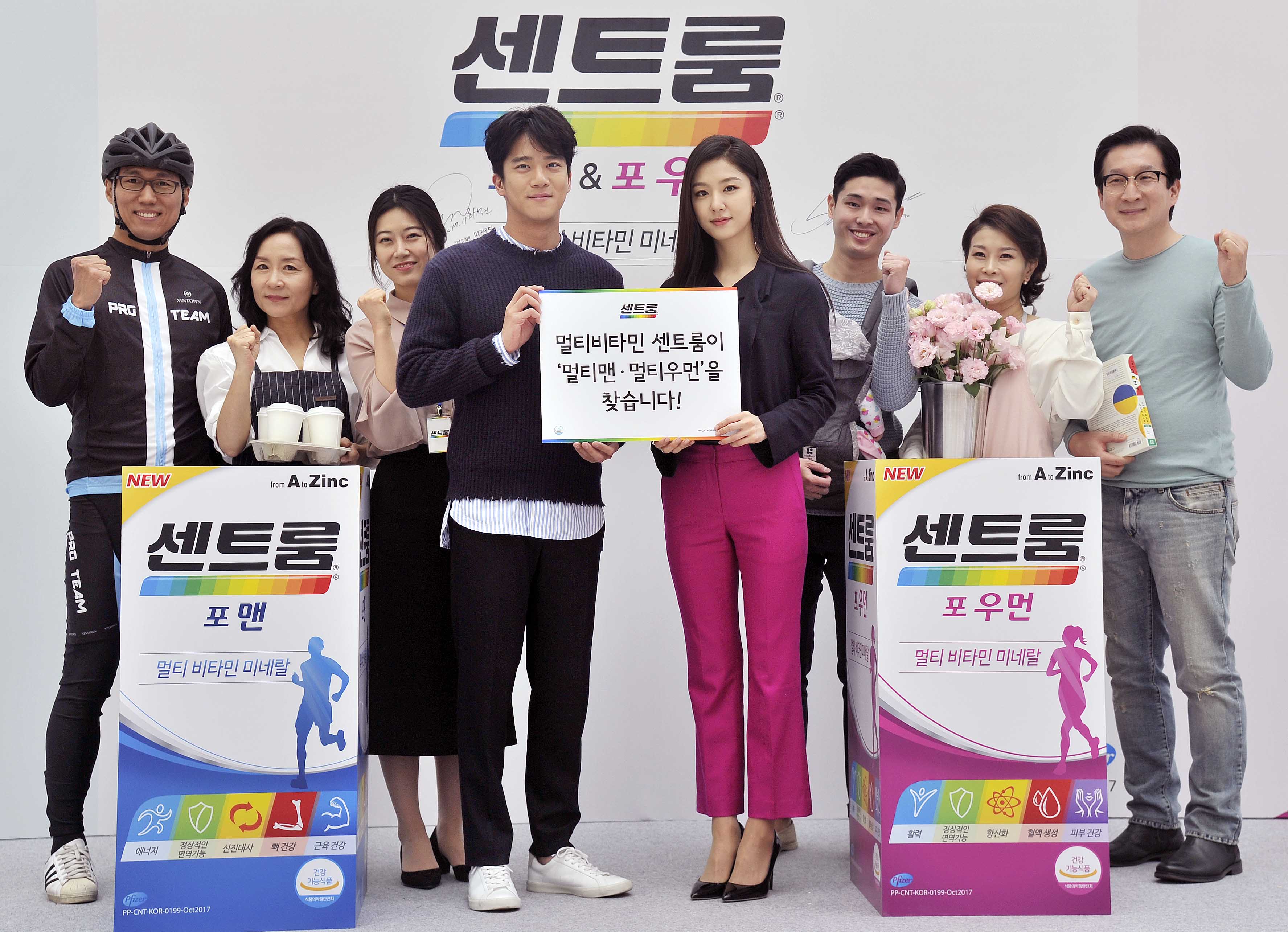한국화이자제약 센트룸이 배우 하석진, 서지혜와 함께 8일 영등포 타임스퀘어 1층에서 센트룸 <멀티맨·멀티우먼 스토리 공모> 사진 행사를 진행했다.