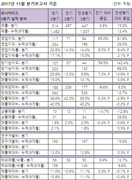 영업이익은 117억으로 전년동기대비 81.8%, 순이익은 107억으로 전년동기대비 142.4% 각각 증가했다.
