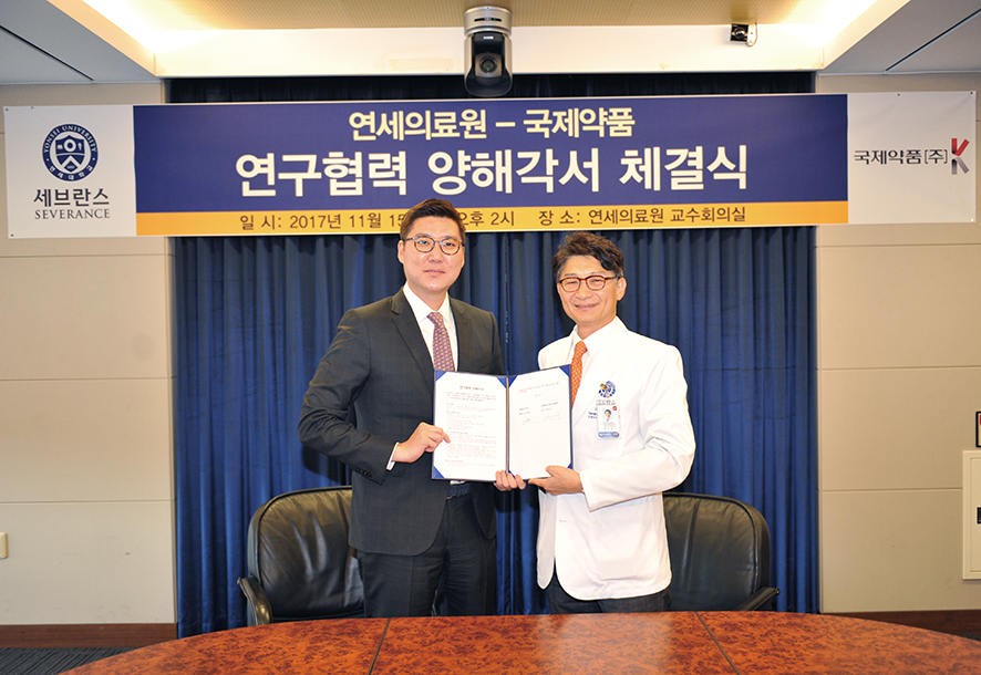 국제약품(대표이사 남태훈)과 연세의료원 산학협력단은 15일 연세의료원 종합관 6층 교수회의실에서 남태훈 사장, 박민수 연세의료원 산학협력단장 등이 참석한 가운데 대사질환치료제 개발을 위한 연구협력 양해각서 체결식을 가졌다.