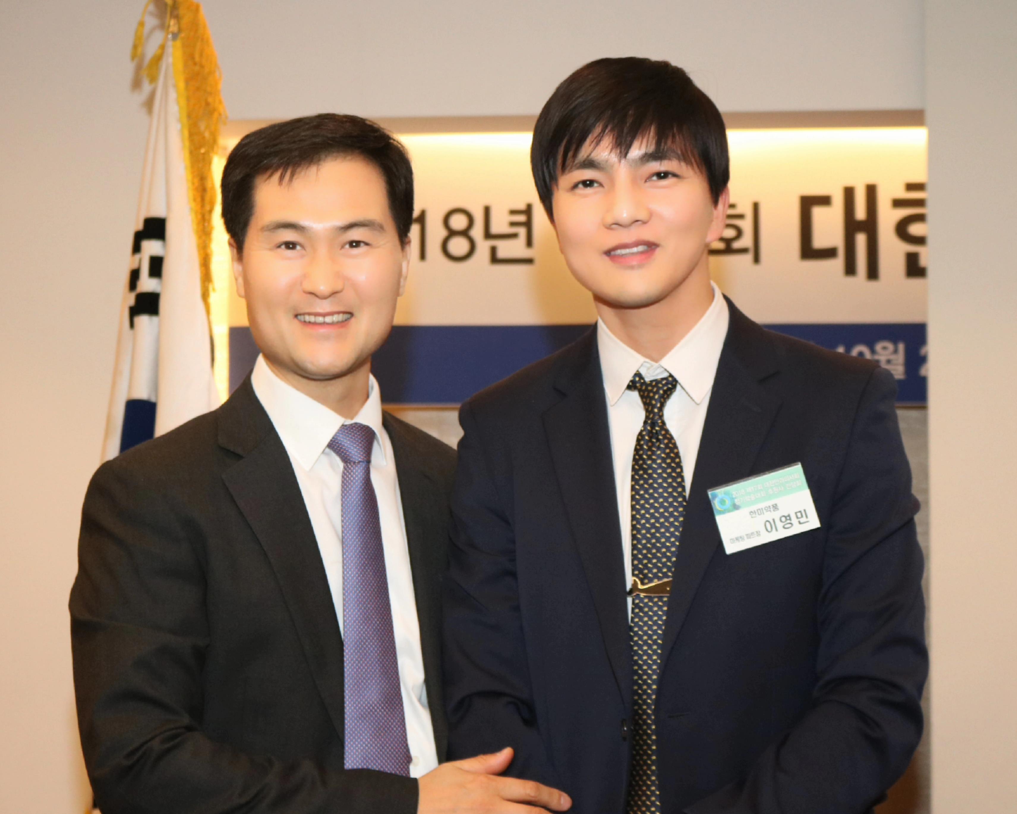 이영민 PM을 만나 그동안 변화와 한미약품 안과 마케팅의 향후 방향에 대해 들었다. (사진 오른쪽 이영민 PM, 왼쪽 이재범 대한안과의사회 회장)