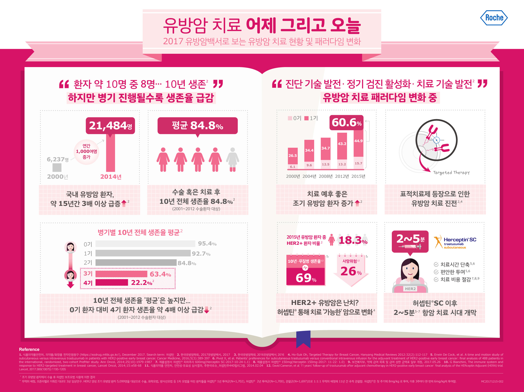 ㈜한국로슈(대표이사 매트 사우스)는 자사의 HER2 양성 유방암 치료제 허셉틴®의 피하주사 제형인 허셉틴SC®(성분명: 트라스투주맙) 출시 3주년을 맞아 최신 유방암 치료 현황 및 제품 정보를 담은 인포그래픽을 선보였다.