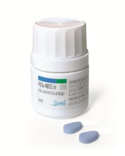 리노페드정은 오리지널인 '비리어드정' 염특허를 피해 무염으로 개발된 제품으로, 길리어드 '비리어드정'보다 크기를 72% 수준으로 낮췄으며, 이를 통해 복용 편리성을 높였다. 또 약가도 오리지널 대비 50%로 저렴하다.