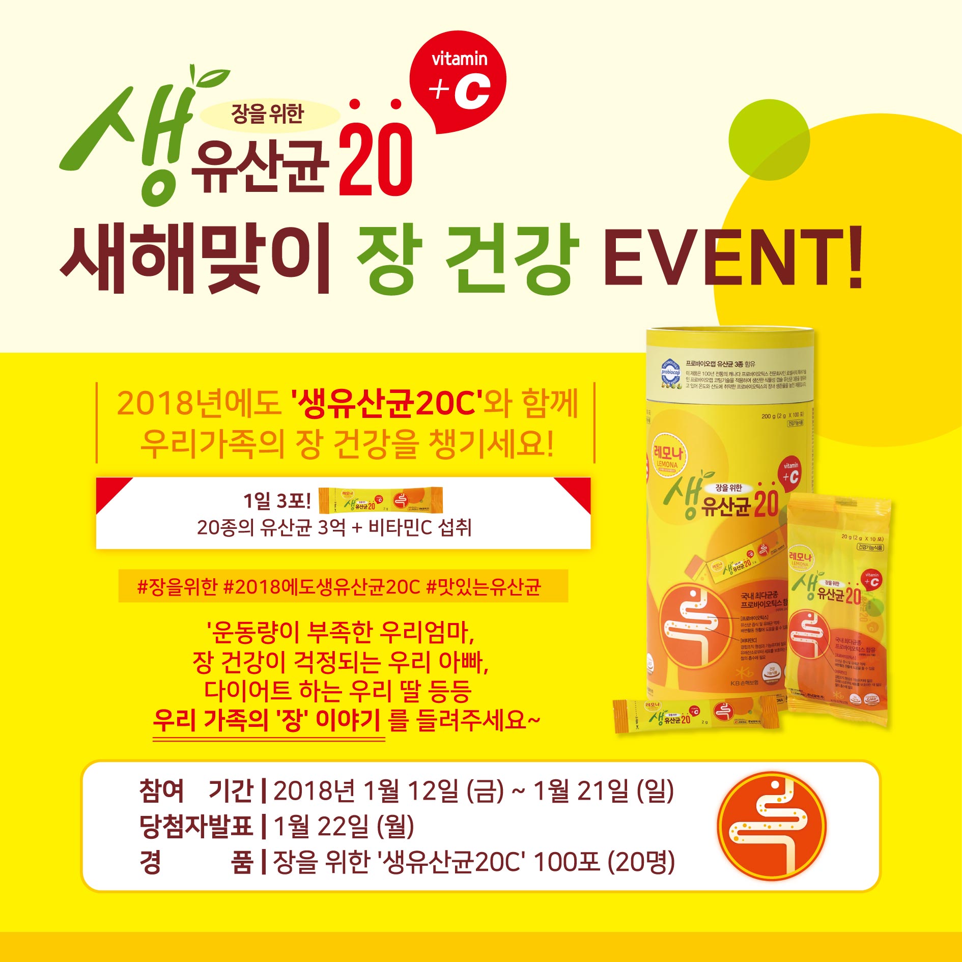 추첨을 통해 장을 위한 ‘생유산균20C’100포를 총 20명에게 선물로 증정한다.