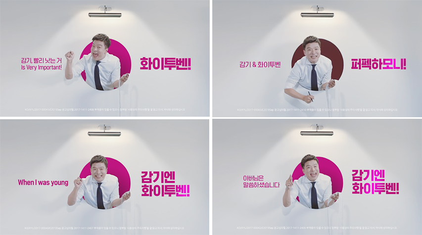 특히 6초 영상에서는 ‘감기엔 화이투벤’이라는 메시지를 전달하기 위해 “감기 빨리 낫는 거 is very important”나 “감기&화이투벤 퍼펙하모니”, “감기 빨리 낫고 싶은 절실함이 있다면 화이투벤!” 등 모델 김생민의 유행어를 위트있게 활용해 화이투벤에 대한 집중도를 높였다.