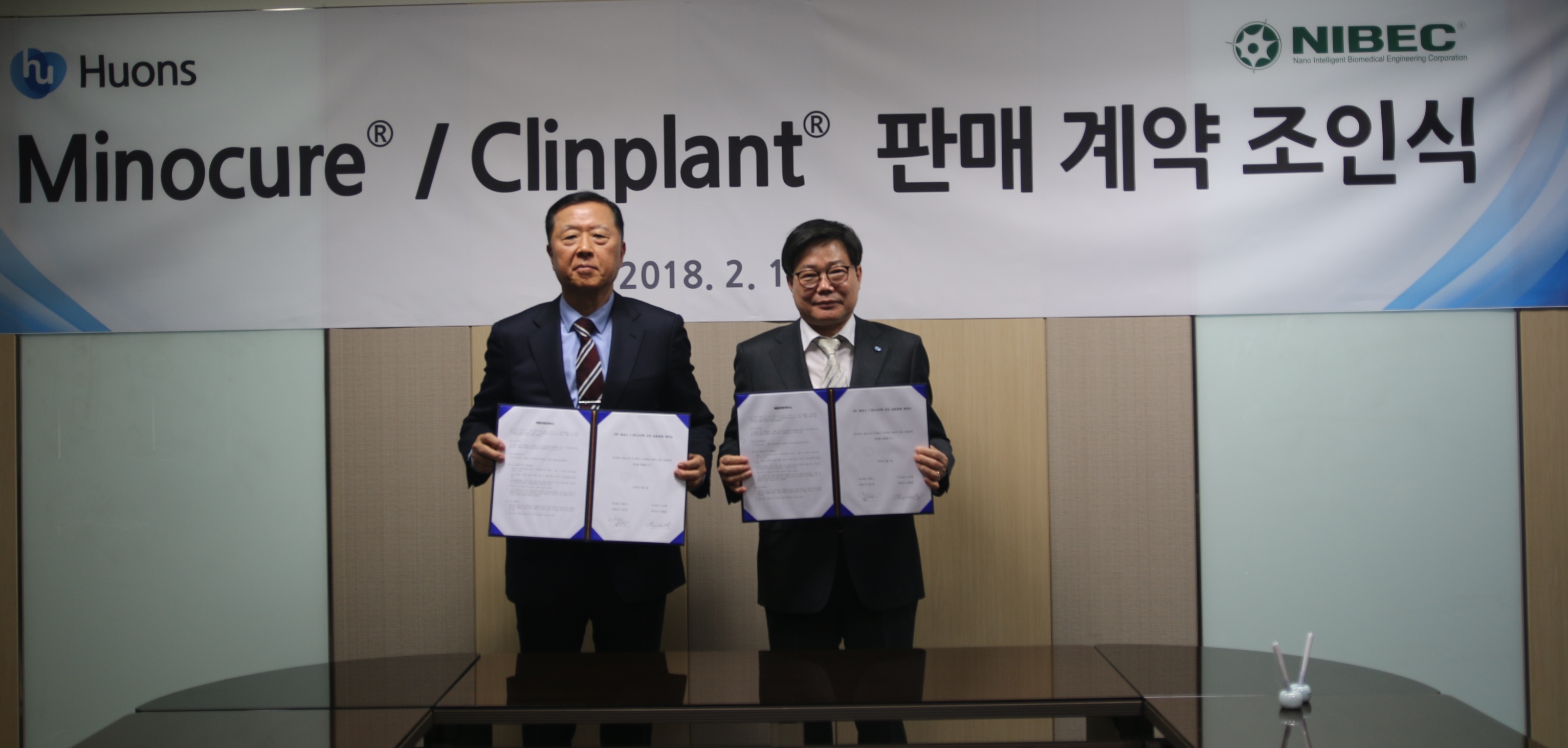 ㈜휴온스글로벌의 자회사 ㈜휴온스(대표 엄기안)가 치과 분야 사업 강화를 위해 지난 1일 휴온스 판교 본사에서 치과 연구 전문기업 ㈜나이벡 (대표 정종평)과 치과용 의약품 공동판매계약을 체결했다.