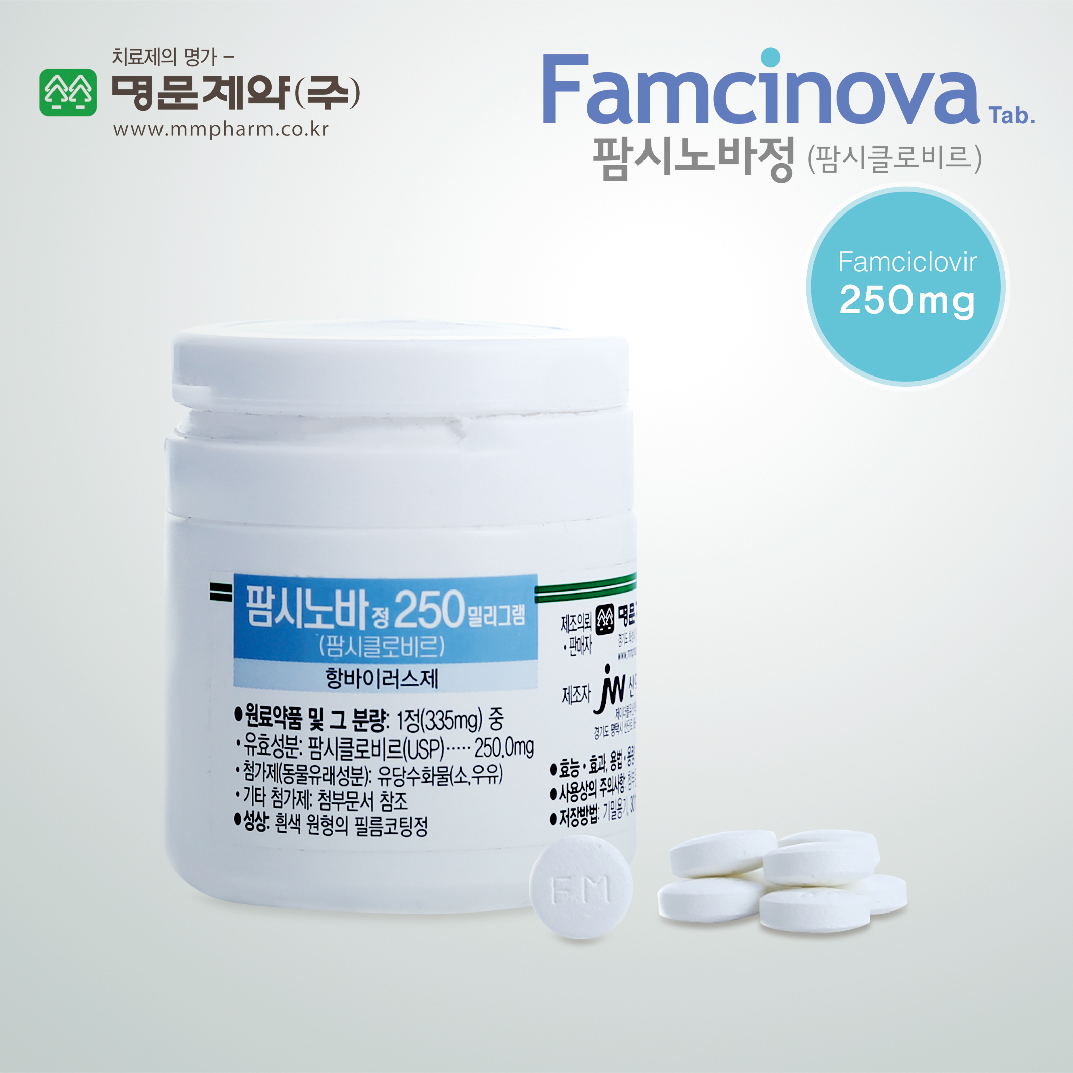 회사 측에 따르면 팜시노바정250밀리그램은 팜시클로비르(Famciclovir) 250mg를 주성분으로 하는 제품으로, 대상포진 바이러스 감염증 및 생식기포진 감염증 치료 / 재발성 생식기포진 억제 효능 효과를 갖고 있다.