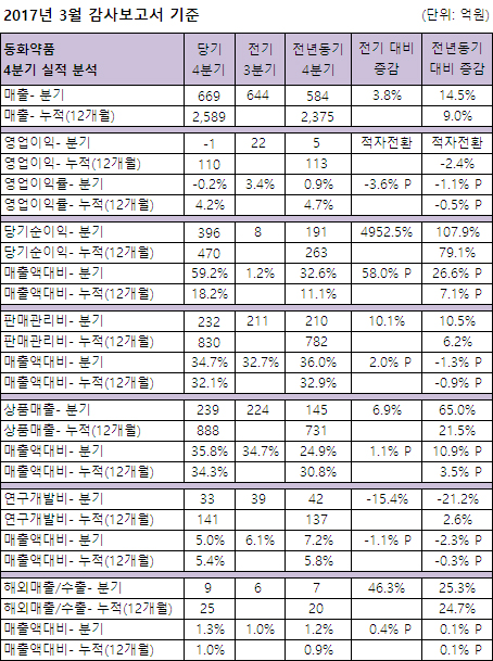 동화약품은 3월 감사보고서 기준 지난해 2,589억원의 매출을 달성, 전년동기대비 9.0% 성장했다.