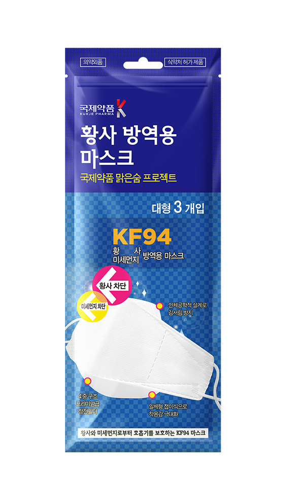회사 측에 따르면 이 마스크는 식약처로부터 KF94로 인증받은 제품으로, 인체공학적설계로 만들어져 황사와 미세먼지 등 입자성 유해물질 및 감염원으로부터 호흡기를 보호해준다.
