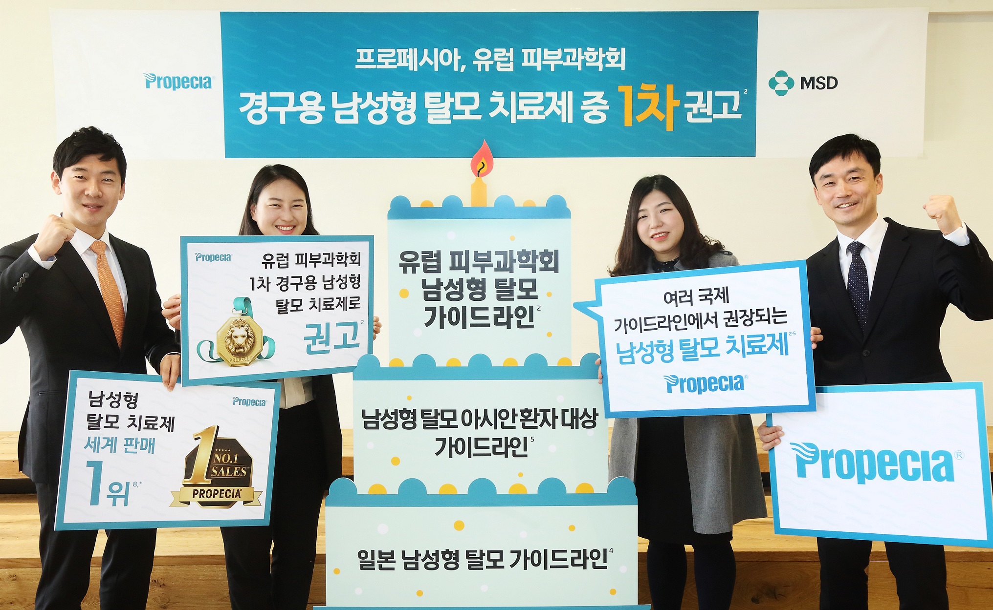 한국MSD(대표 아비 벤쇼산)는 지난 3월 26일 한국MSD본사에서 경구용 남성형 탈모 치료제 프로페시아®(피나스테리드 1mg)가 2017년 11월 유럽 피부과학회 포럼(EDF)에서 발표한 최신 남성형 탈모 치료 가이드라인에서 경구용 남성형 탈모 치료제로는 유일하게 1차 약제로 권고됨을 기념하는 사내행사를 가졌다.