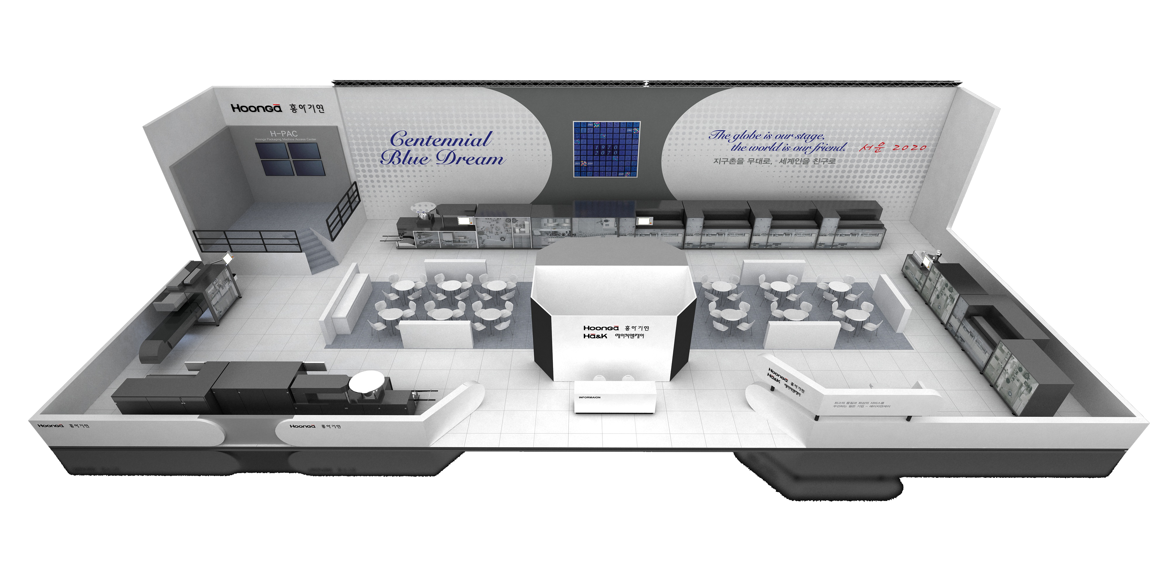 450sqm의 공간에 고객을 위한 서비스 공간을 중앙에 크게 배치해 방문객들의 편안함을 가질 수 있게 구성했고 기계들은 외곽라인으로 배열해 손쉽게 원하는 포장라인을 관람할 수 있도록 배치했다.