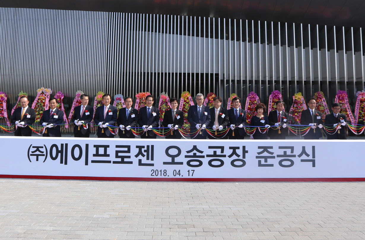 항체신약 및 바이오시밀러 전문기업 에이프로젠(대표 김재섭)은 17일 충북 청주에서 글로벌 바이오시밀러 의약품을 생산할 에이프로젠바이오로직스 오송 cGMP공장 준공식을 가졌다. 이날 준공식에는 오제세 청주시 국회의원, 경대수 증평군 국회의원, 임태희 한경대학교 총장, 이장섭 충북정무부지사 등 정관계 인사들과 에이프로젠 임직원들을 비롯해 니찌이꼬 유이치 타무라 대표, 바이넥스 이혁종 사장 등 100여 명의 관계자들이 참석했다.