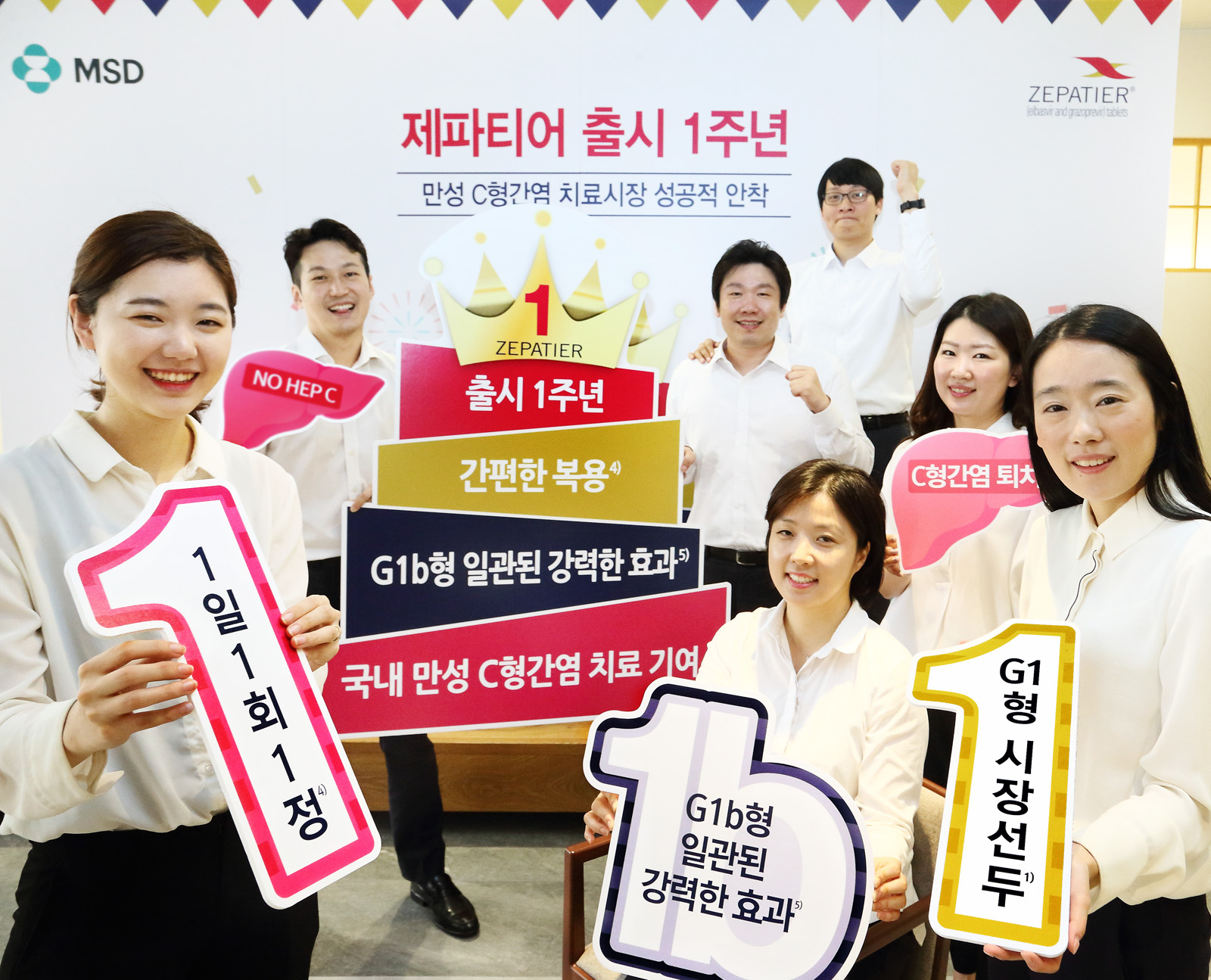 헬스케어 기업 한국MSD(대표이사 아비 벤쇼산)는 지난 2일, 자사의 만성 C형간염 유전자형 1형 및 4형 치료제 ‘제파티어™(엘바스비르/그라조프레비르)’의 국내 출시 1주년을 맞아 성공적인 시장 안착을 축하하는 사내행사를 진행했다고 밝혔다.