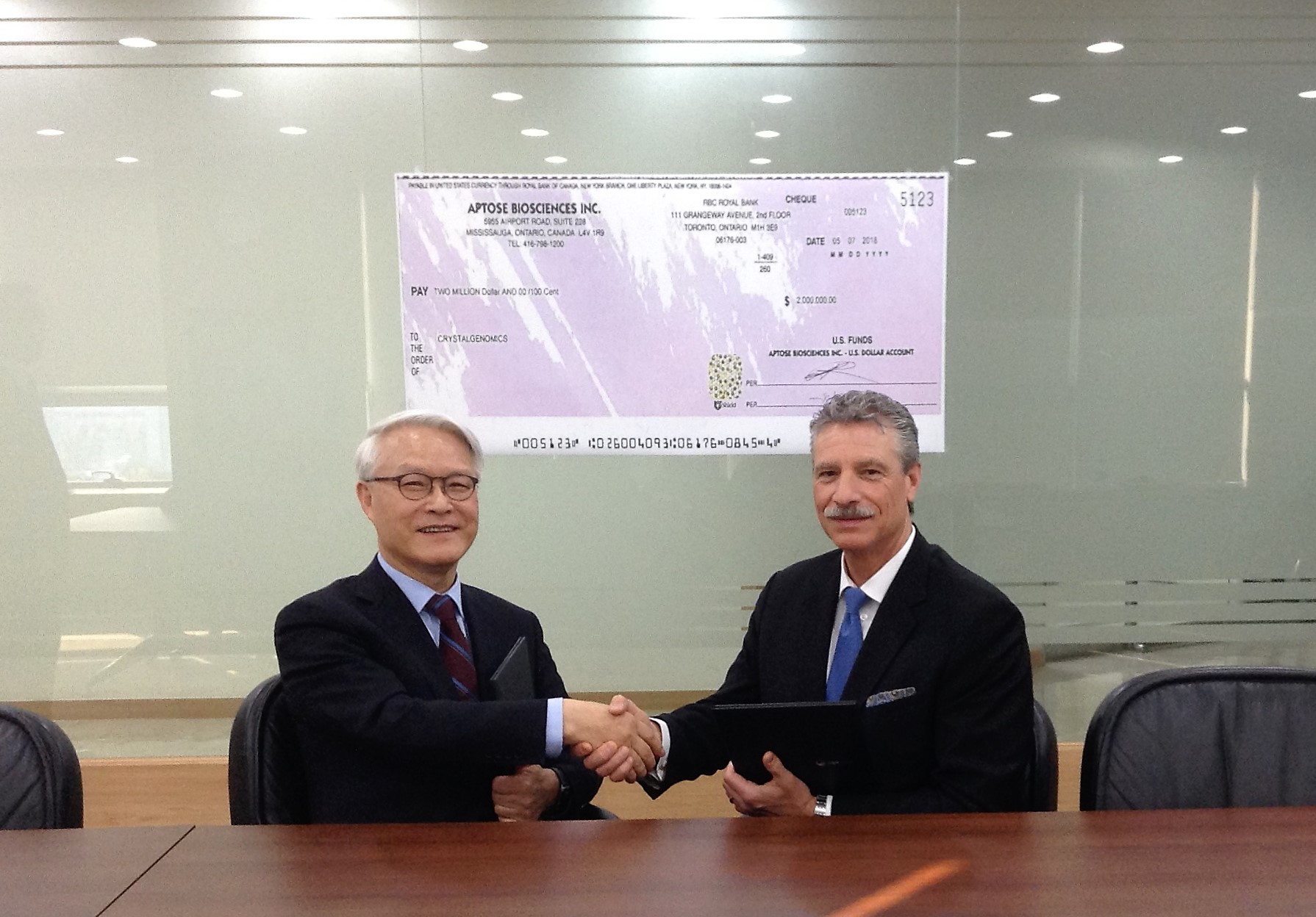 크리스탈지노믹스(대표이사 조중명, 이하 ‘크리스탈’)는 백혈병 신약후보 'CG-806'에 대한 옵션행사금 (1차 마일스톤, USD $ 2,000,000)을 앱토즈 바이오사이언스(Aptose Bioscience Inc., 이하 앱토즈)로부터 조기 수령했다고 8일 밝혔다.