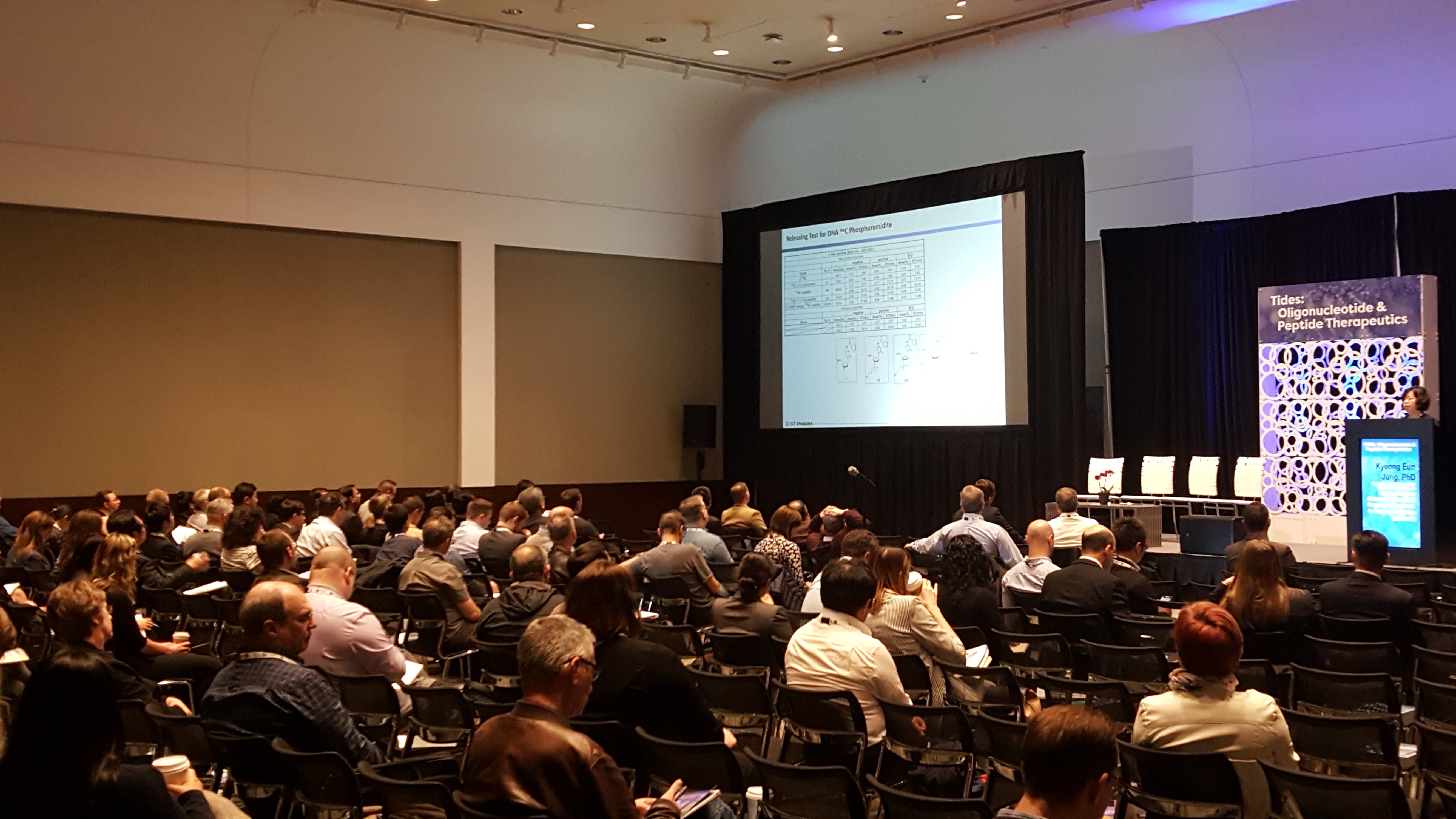 발표장에는 머크(Merck), 노바티스(Novartis) 등 글로벌 제약사와 올리고뉴클레오타이드 신약을 개발하는 주요 바이오 벤처 기업인 아이오니스(Ionis), 앨나이람(Alnylam) 등이 참석해 많은 관심을 나타냈다.