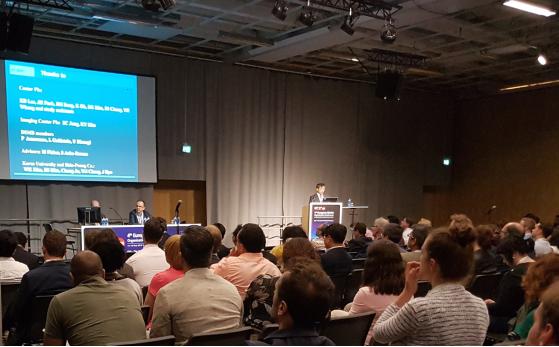 구두연자로 나선 서울 아산병원 김종성 교수는 국내 8개 주요 대학병원에서 80명을 대상 (1단계 11 명 단일용량, 공개; 2단계 69 명, 이중눈가림 무작위배정, 2 용량, 위약대조)으로 표준치료요법제인 혈전용해제 tPA와 병용투여해 90일간 관찰한 이 연구에서 뇌출혈 (parenchymal hematoma 등) 발생률, 사망률, 부작용 빈도 등에서 위약군, 저용량군 (40 mg/dose), 고용량군 (80 mg/dose)간 통계적으로 유의적인 차이가 없는 것으로 나타났다고 발표했다.