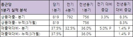 매출액대비 비율은 0.2%p감소해 40.5%를 기록했다.