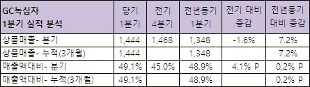 다만 GC녹십자도 유한양행과 마찬가지로 1분기 상품매출액이 전기(2017년 4분기 1,468억)과 비교해서는 1.6%(24억) 줄었다.