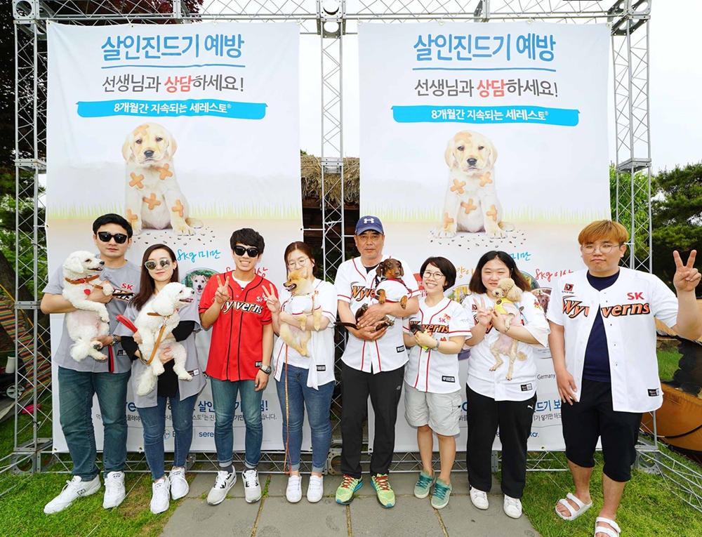바이엘코리아는 ‘바이엘 세레스토 도그데이’를 통해 SK와이번스와 함께 300여명에게 인천 SK 행복드림구장 외야 잔디밭 관람석인 T 그린존에서 반려견과 동반으로 경기를 관람할 수 있는 기회를 제공했다.