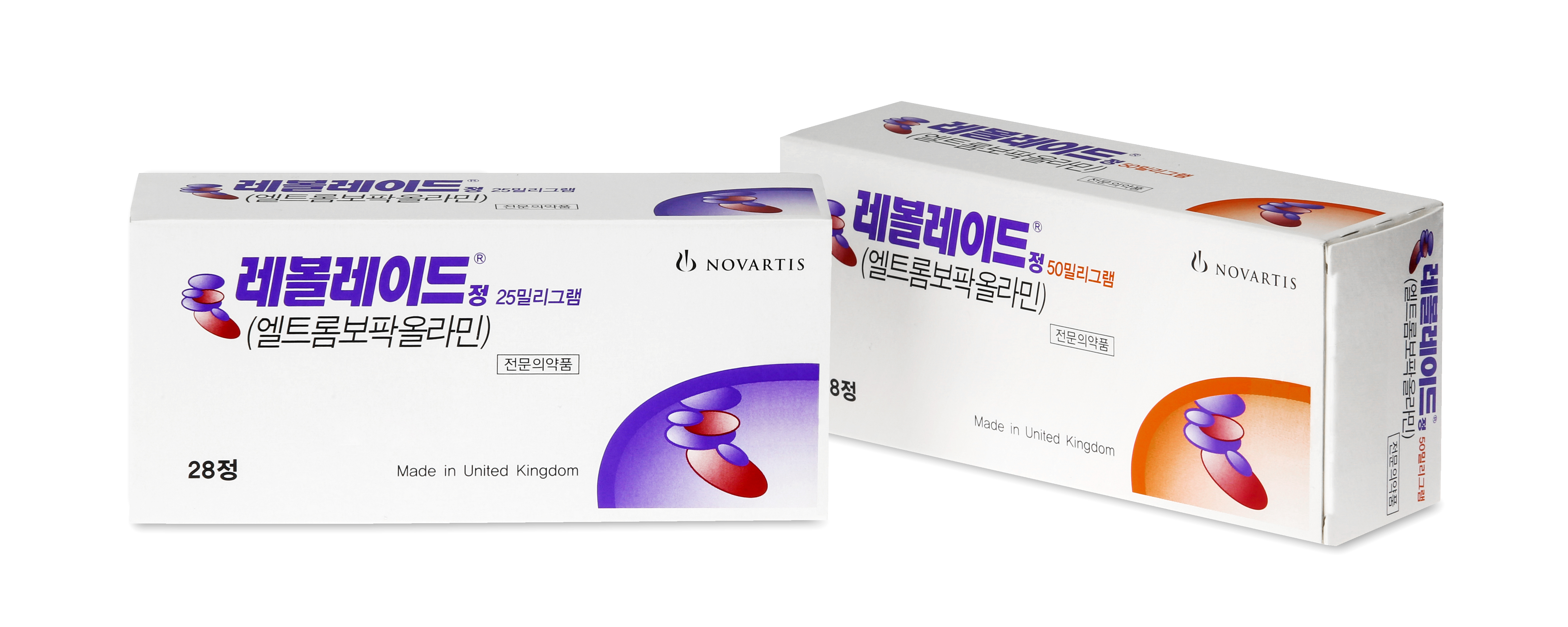 한국노바티스(대표 클라우스 리베)는 면역성 혈소판 감소증 치료제 ‘레볼레이드’(성분명 엠트롬보팍 올라민, eltrombopag olamin)가 지난 11일 식품의약품안전처로부터 중증 재생불량성 빈혈에 대한 적응증을 추가 승인  받았다고 밝혔다.