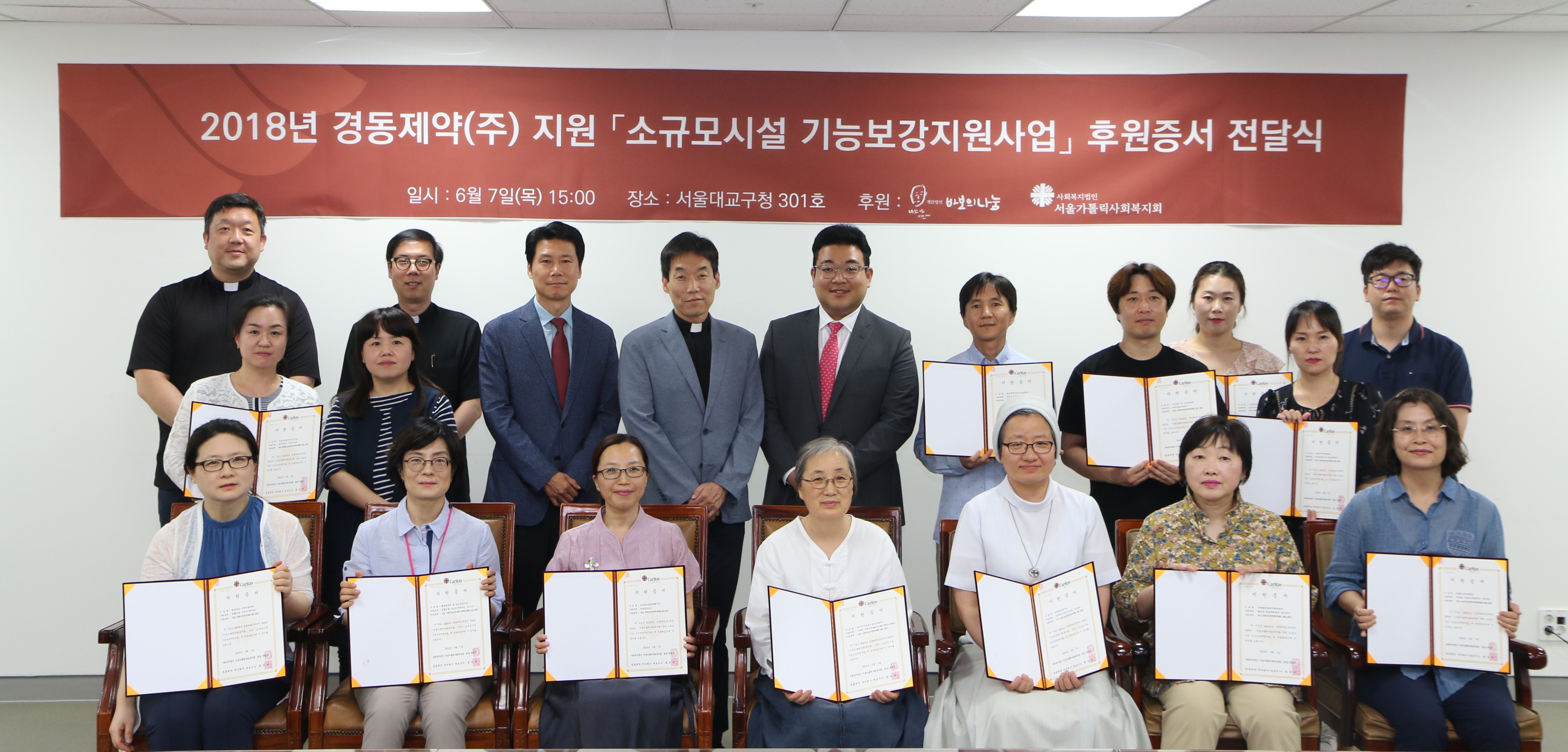 이번 후원증서 전달은 경동제약이 지난 연말 바보의 나눔에 기부한 3억원 가운데 7천만원이 서울가톨릭사회복지회에 지정기탁된 것으로, 지역아동센터 및 노인센터, 여성보호시설 등 국내 가톨릭 사회복지단체 17개소에 지원돼 차량구입 및 시설개선 공사, 장비구입 비용 등으로 사용될 예정이다.