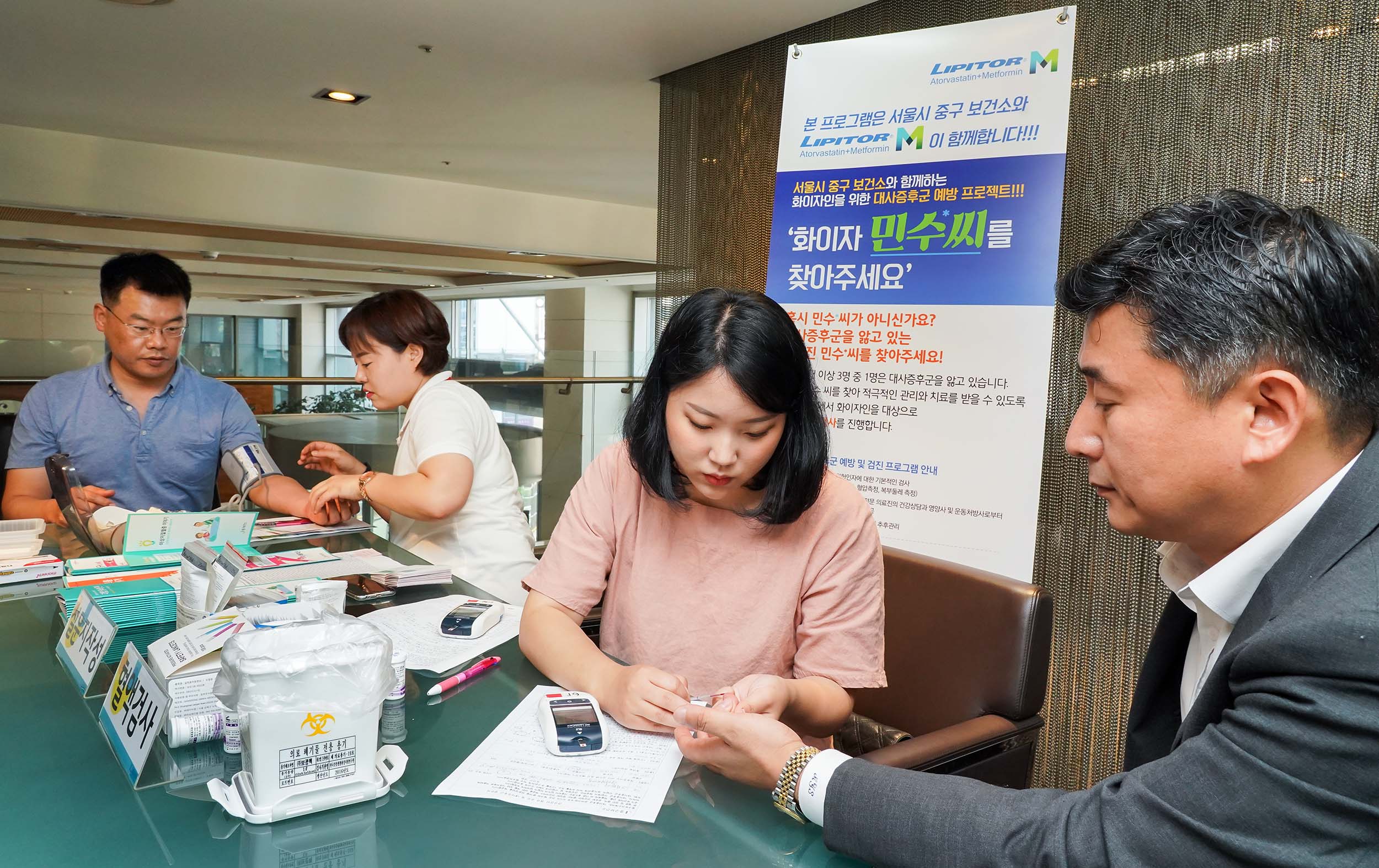 24일 한국화이자제약 명동 사옥에서 진행된 캠페인 론칭 행사에서는 서울시 중구 보건소의 협조 하에 임직원들을 대상으로 대사증후군 검진이 실시됐다.