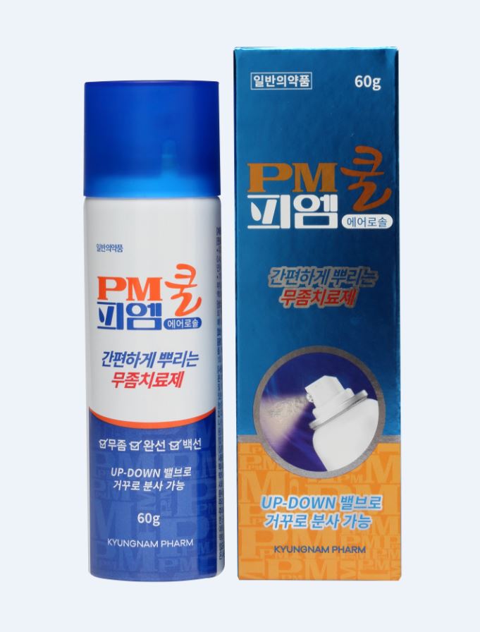 ‘피엠쿨에어로솔’은 무좀 부위에 직접 손대지 않고 뿌리는 에어로솔 타입으로 간편하고 위생적이며 빠르게 건조되어 사용직후 바로 활동할 수 있어 편리하다.