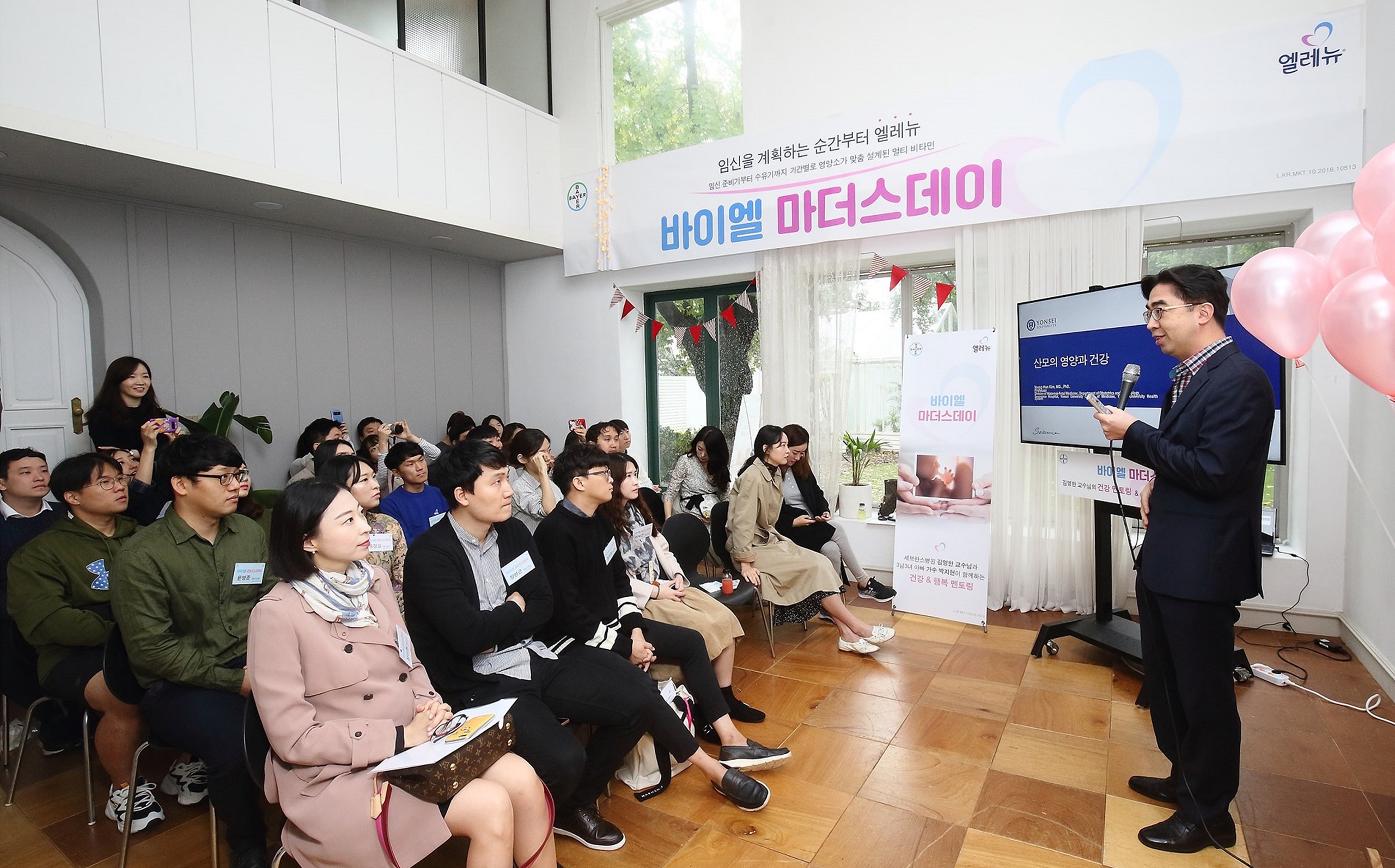 임산부를 위한 건강기능식품 '엘레뉴®'를 판매하는 바이엘코리아가 지난 6일 임산부의 날을 앞두고 서울 마포구에 위치한 플러스준 스튜디오에서 예비 엄마와 예비 아빠 총 50명을 대상으로 ‘바이엘 마더스데이’ 행사를 개최했다.