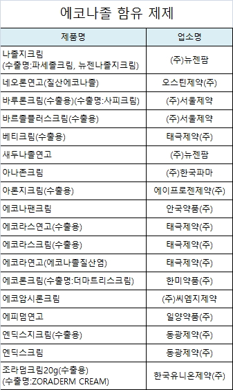 또 '고령자에 대한 투여 항'에 "에코나졸질산염 크림에 대한 임상연구에는 고령층과 젊은층의 반응차를 판단하기에 충분한 수의 65세 이상 피험자가 포함되지 않았다. 다른 임상 사례에서 고령층과 젊은층 환자 간 반응 차는 확인되지 않았다. 일반적으로 고령자에 대한 용량설정은 주의가 필요하며, 설정된 용량 범위에서 가장 낮은 용량으로 시작하고 간장, 신장 또는 심장기능 저하 및 동반질환이나 병용약물을 고려하여야 한다'는 내용을 신설하도록 했다.