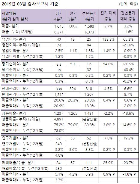 제일약품은 3월 감사보고서 기준 지난해 6,271억원의 매출을 달성, 전년동기대비 1.6% 감소했다.
