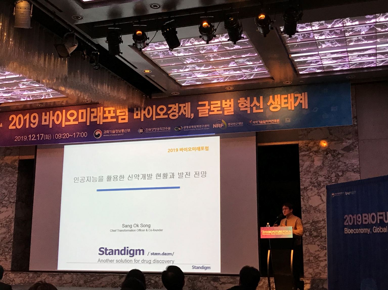 스탠다임 송상옥 최고기술실현책임자는 17일 코엑스 인터콘티넨탈 호텔 하모니볼룸에서 열린 2019 바이오미래포럼에서 ‘AI를 활용한 신약개발 현황과 전망’을 주제로 이같이 발표했다.