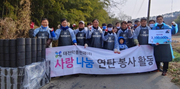 국내 최장수 의약품 유통기업인 태전그룹 태전약품판매(부회장 오영석)는 지난 21일 전주시 완산구 동서학동을 찾아 지역 에너지 소외계층을 위한 따뜻한 겨울나기 연탄 봉사 활동을 진행했다고 23일 밝혔다.
