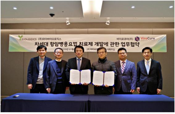바이로큐어는 7일 와이바이로직스와 차세대 항암 병용요법 치료제 개발 업무협약을 체결했다고 밝혔다.