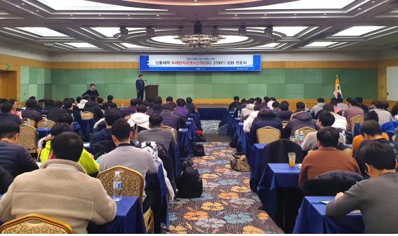 전문가교육에서는 부패방지경영시스템 인증심사원으로 활동하고 있는 조경석 인증심사원의 '부패방지경영시스템운영 및 고도화'라는 주제로 강연이 이뤄져 임직원 모두에게 부패방지경영시스템의 이해를 돕는 자리가 됐다.