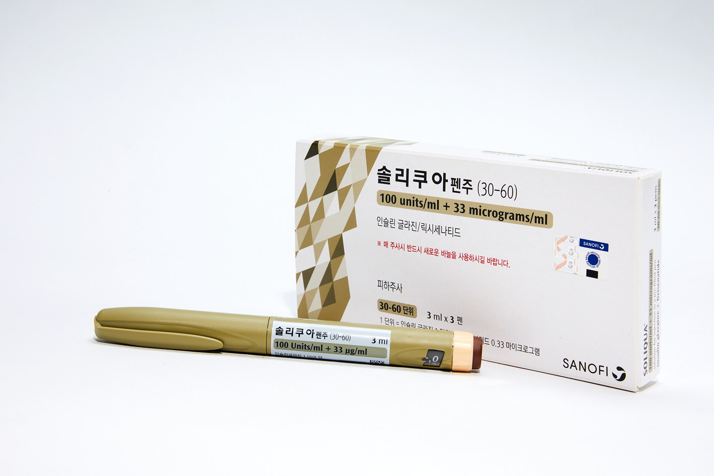 ㈜사노피-아벤티스 코리아(대표 배경은)는 지난 21일 국내 최초 고정비율 통합제제(Fixed Ratio Co-formulation, 이하 FRC) 당뇨병 치료제인 솔리쿠아®펜주 (30-60) (성분명: 인슐린글라진, 유전자재조합 100U/mL 및 릭시세나티드 33 mcg/mL, 이하 솔리쿠아®)를 출시했다.