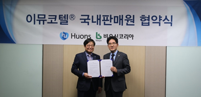 (주)휴온스(대표 엄기안)는 지난 21일 본사에서 비오신코리아(대표 강종욱)와 방광암 재발방지 면역항암제 ‘이뮤코텔®(Immucothel®)’ 국내 판권 확보를 위한 업무 협약을 체결했다.