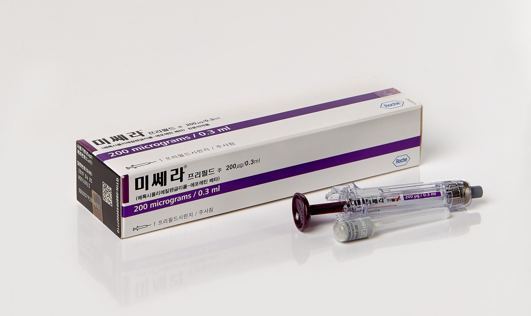 최근 로슈의 만성 신질환 빈혈 치료제 미쎄라(성분명: 메톡시폴리에칠렌글리콜-에포에틴베타)가 장기 안전성 데이터를 공개해 주목된다.