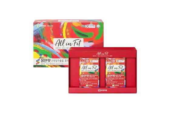 회사 측에 따르면 올인핏은 기존 자사 제품인 올인정과 비교해 혈액순환에 도움을 줄 수 있는 센탈라아시아티카 추출물 함량을 60mg에서 120mg으로 2배 높혔다.