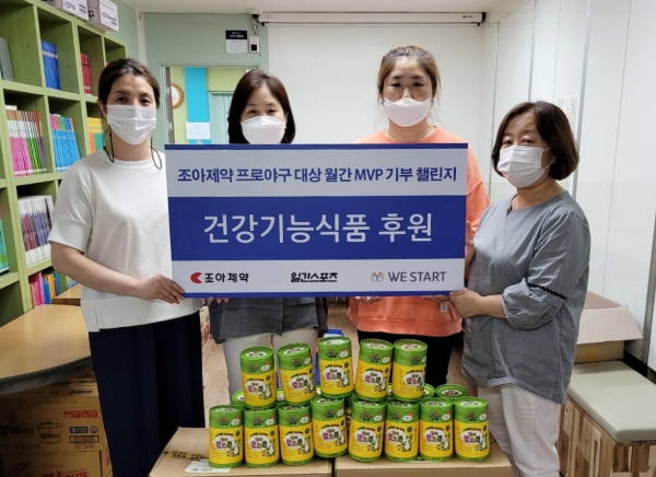 조아제약이 ‘조아제약 프로야구 대상 월간 MVP 기부 챌린지’를 통해 소외계층 아이들에게 건강기능식품을 후원했다고 5일 밝혔다.