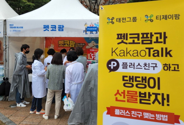 태전그룹(태전약품판매·티제이팜·오엔케이·AOK)이 지난 4일 서울시청 앞 서울광장에서 열린 ‘2022 건강서울페스티벌’에서 반려가족과 함께하는 소통 이벤트를 성황리에 마쳤다고 밝혔다.