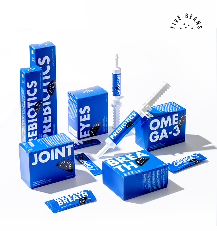 ‘회사에 따르면 파이브빈스’는 반려동물의 알레르기를 최소화하기 위해 옥수수, 밀, 쌀 등의 곡물을 사용하지 않고, 위장장애 등을 고려해 저자극 원료(Hypoallergenic)만을 엄선해 기획, 제조한 영양제다.