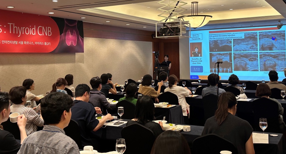 벡톤디킨슨(BD)코리아는 갑상선 CNB(Core Needle Biopsy, 중심부바늘생검)시술에 관심이 높은 의료진을 대상으로, 제1회 ‘Meet The Pioneers’ 세미나를 지난 22일 그랜드 인터컨티넨탈 서울파르나스 아이리스홀에서 진행했다고 24일 밝혔다.