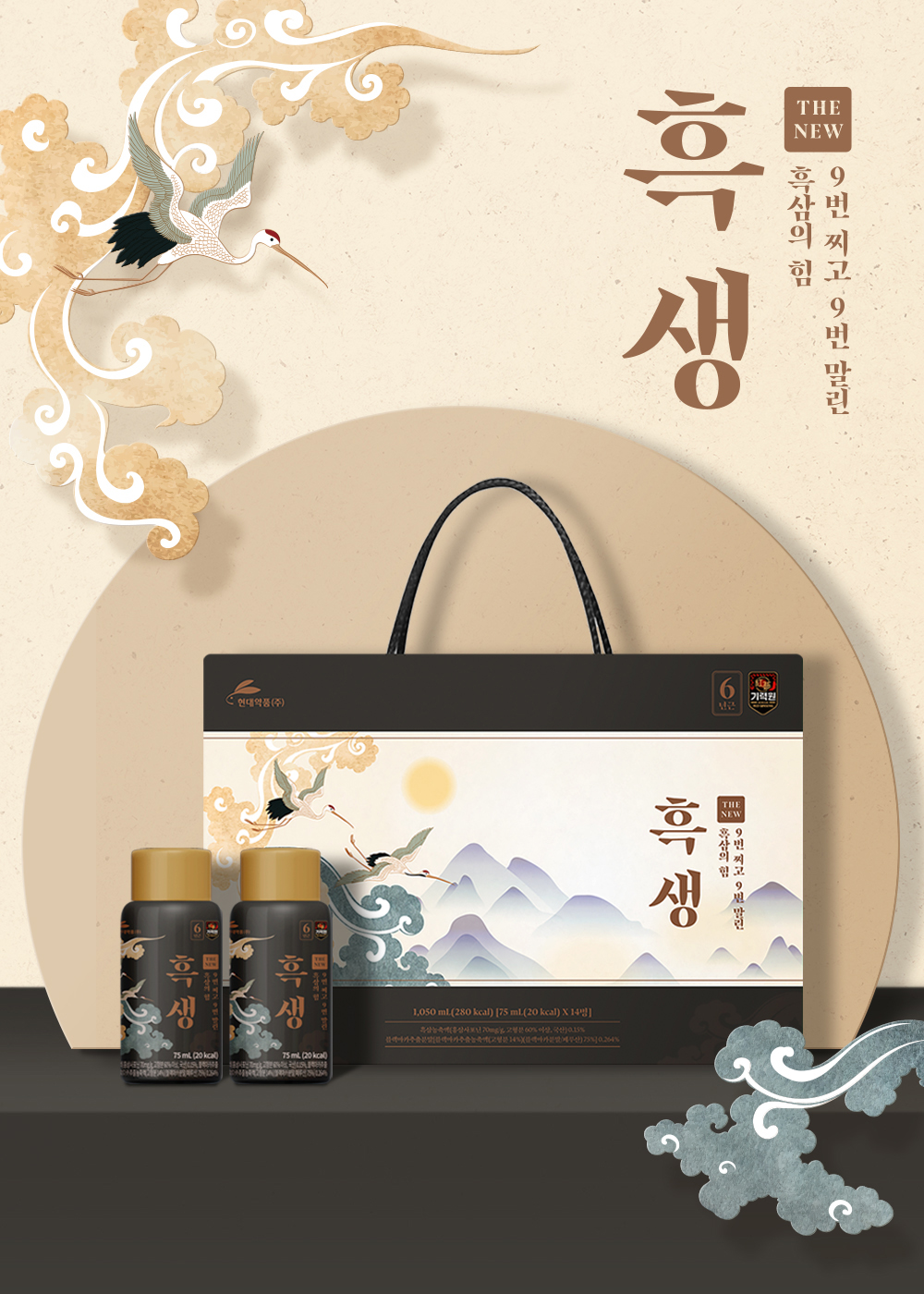 이번에 출시한 ‘THE NEW 흑생’은 흑삼 농축액에 블랙마카를 더한 프리미엄 홍삼 음료다. 흑삼은 수삼을 찌고 말리는 공정을 2~3회 거치는 홍삼에 비해, 수삼을 9번 찌고 9번 말리는 ‘구증구포’ 과정을 거친 것으로, 진세노사이드 Rg3 등 홍삼의 유효 성분을 극대화한 제품이다.