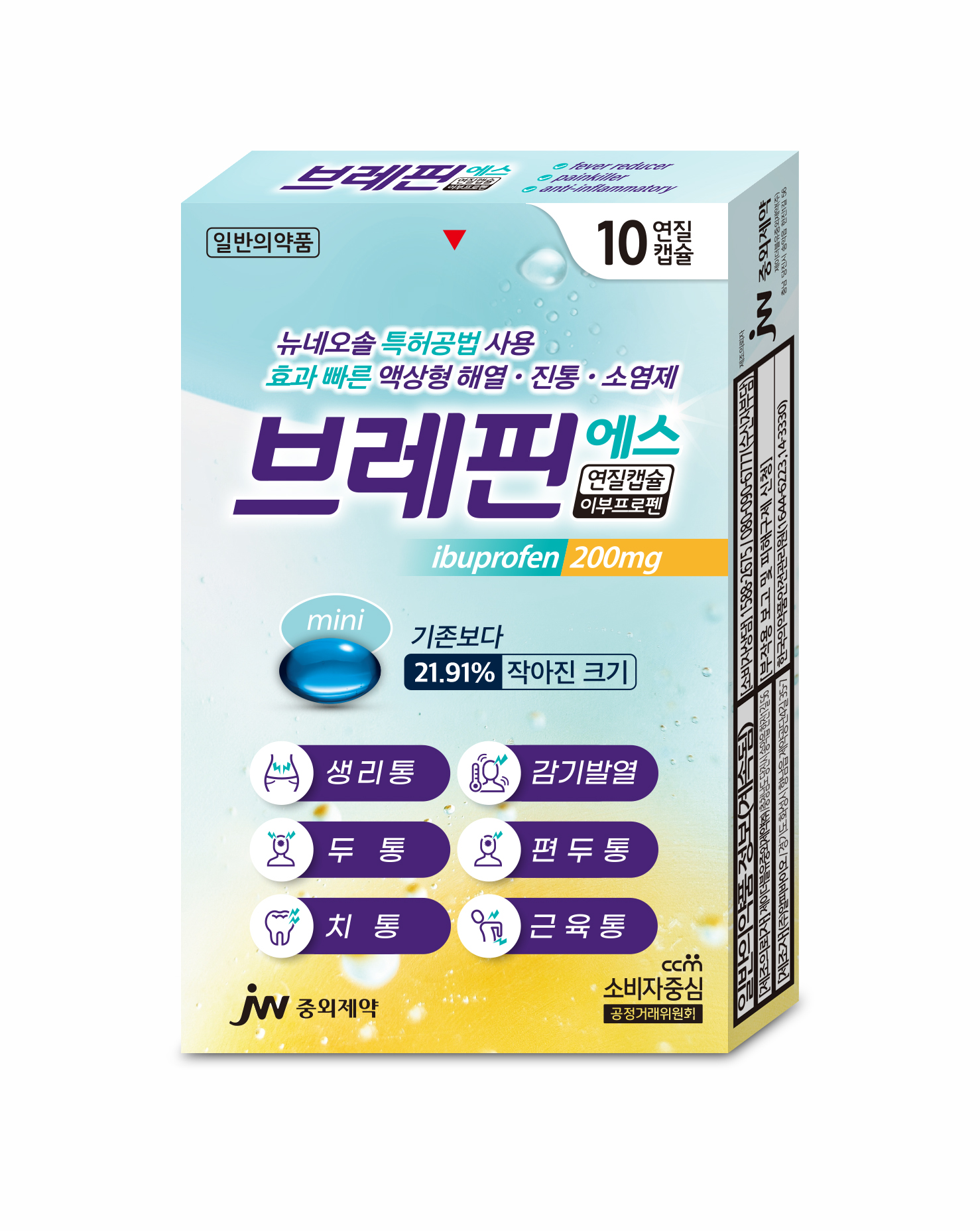 JW중외제약은 액상형 연질캡슐 진통제 ‘브레핀에스’의 제형 크기 축소와 함께 패키지 디자인을 변경한 리뉴얼 제품을 출시한다고 4일 밝혔다.