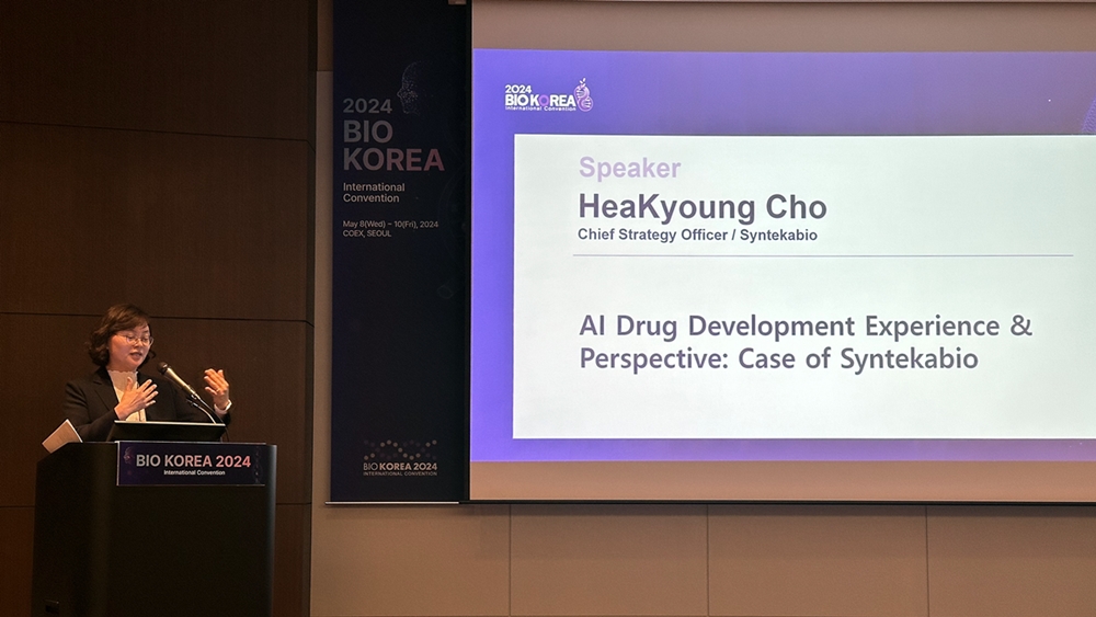 인공지능(AI) 신약개발 전문기업 신테카바이오가 지난 9일 서울 삼성동 코엑스에서 열린 ‘바이오코리아 2024’ 컨퍼런스에 참가해 조혜경 사장이 ‘AI 신약개발의 경험과 전망: 신테카바이오의 예’ 주제로 AI 신약개발 현황 및 딥매처(Deepmatcher®)를 활용한 개발 사례에 대해 발표했다. 자체 진행 중인 약물재창출 프로젝트를 비롯해 암 신생항원 예측 및 항체신약 발굴 플랫폼에 관해서도 설명했다.