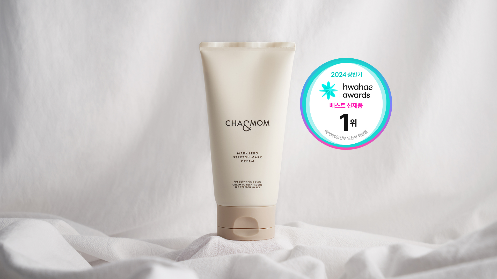 CMG제약(씨엠지제약, 대표 이주형)의 가족 피부건강 솔루션 ‘차앤맘(CHA&MOM)’은 ‘마크제로 튼살 크림’이 ‘2024 화해 어워드 베스트 신제품’ 임산부 화장품 부문 1위를 차지했다고 19일 밝혔다.