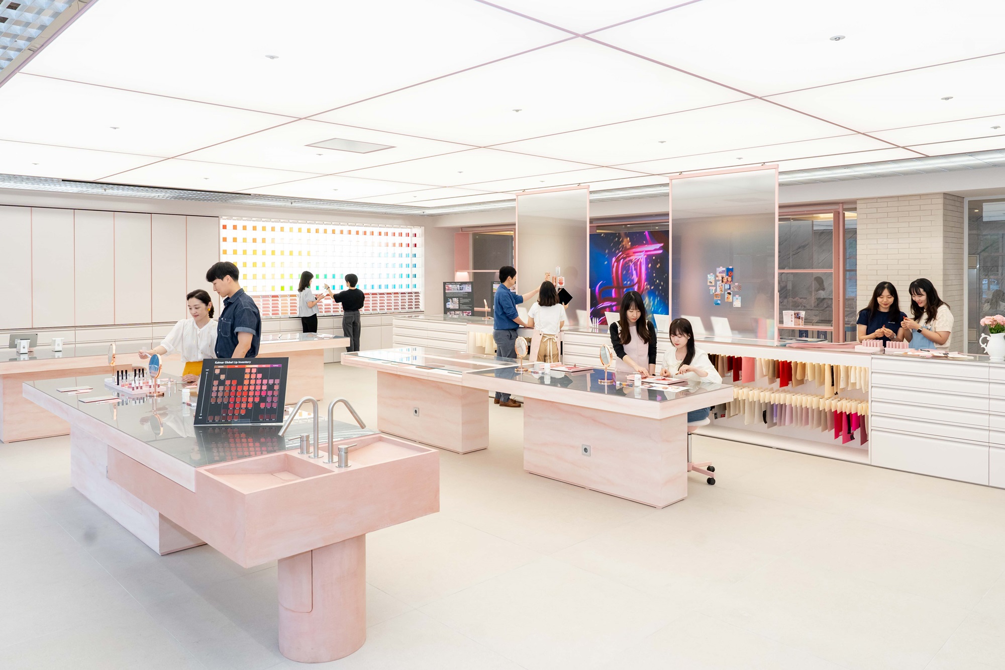 컬러 아뜰리에는 30여 년간 축적된 빅데이터를 바탕으로 화장품 브랜드 기획자가 원하는 미세한 차이의 색까지 숙련된 컬러 전문가가 완벽히 구현해 주는 맞춤형 색조제품 개발 공간이다. 서울 서초구 내곡동 한국콜마 종합기술원 로비층에 238㎡ 규모로 조성됐다.