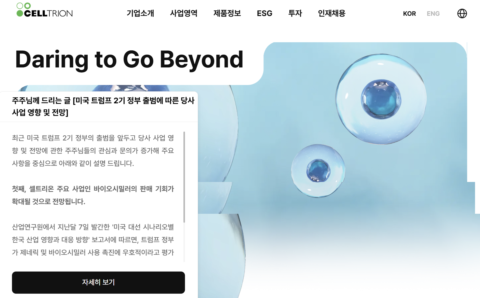 셀트리온 관계자는 “트럼프 2기 정부의 정책 기조가 당사 사업에 긍정적 영향을 미칠 것으로 기대한다”며 “글로벌 시장에서의 경쟁력을 강화해 주주 가치를 극대화할 것”이라고 밝혔다.