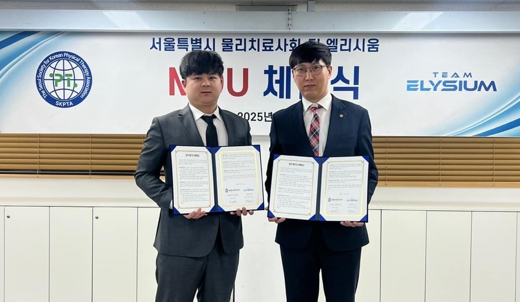 근골격계 전문 디지털 헬스케어 기업 팀엘리시움(대표 김원진, 박은식)과 서울특별시 물리치료사회(회장 박재명)가 지역사회 내 체형 불균형 문제 해결을 위한 업무협약(MOU)을 체결했다.