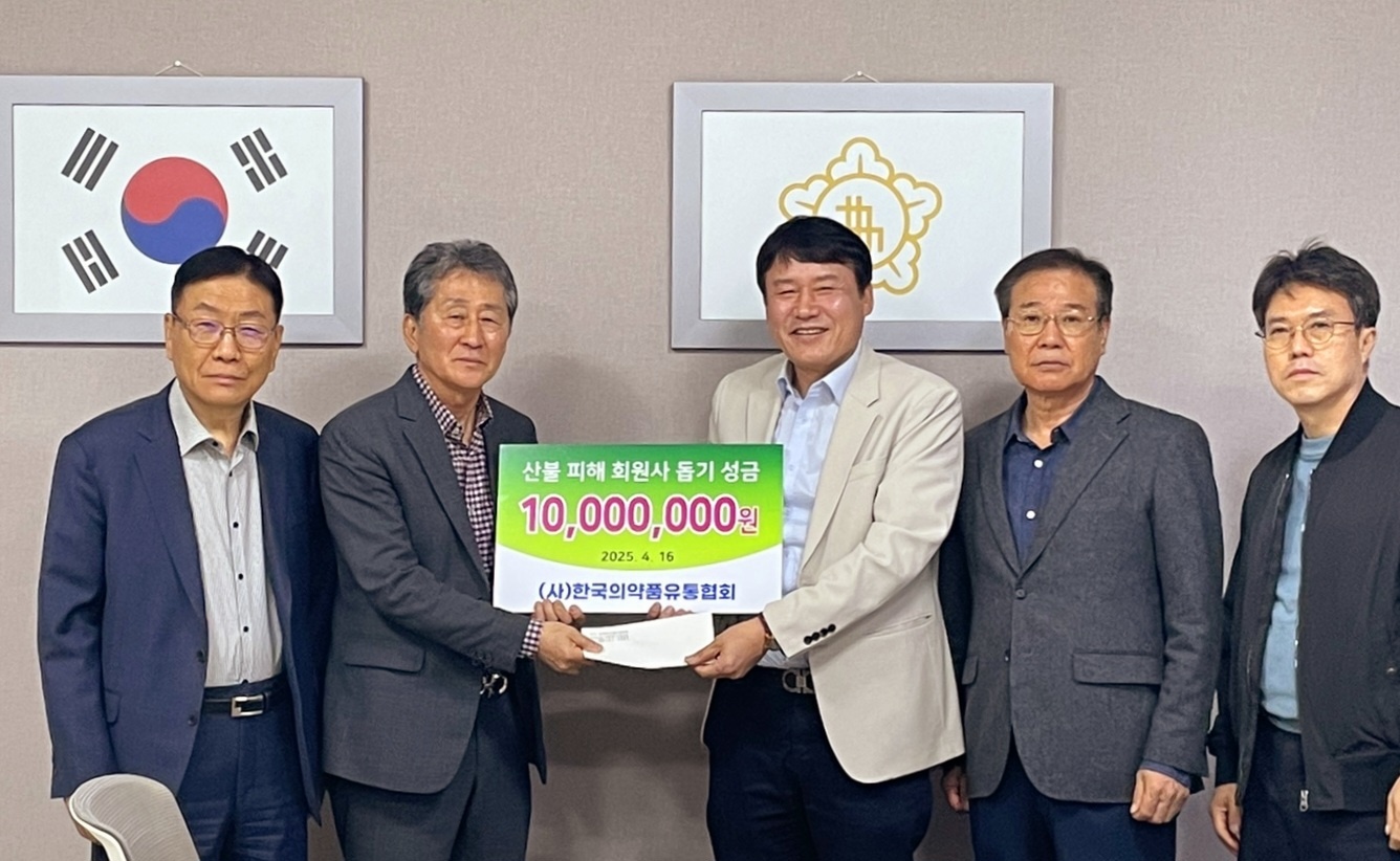 한국의약품유통협회(회장 박호영)는 경북지역 대형 산불로 피해를 입은 회원사인 ‘안동명성약품’ 측에 회원사들이 모은 피해복구 성금 1천만원을 전달했다.