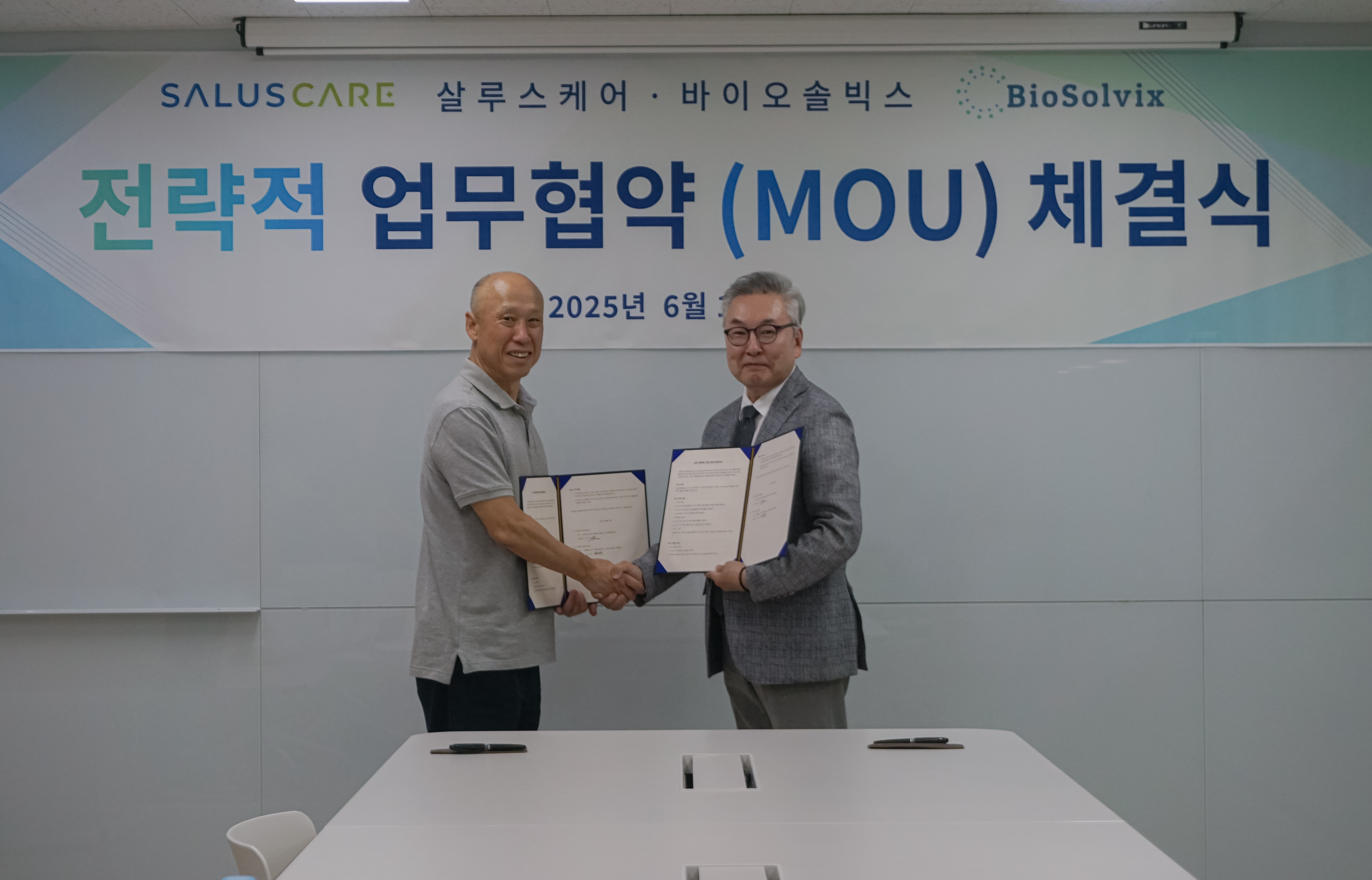 줄기세포 기반 플랫폼 전문 기업 바이오솔빅스(대표이사 최수영)는 살루스케어(대표이사 하성욱)와 신규 사업 론칭을 위한 전략적 업무협약을 체결했다고 20일 밝혔다.